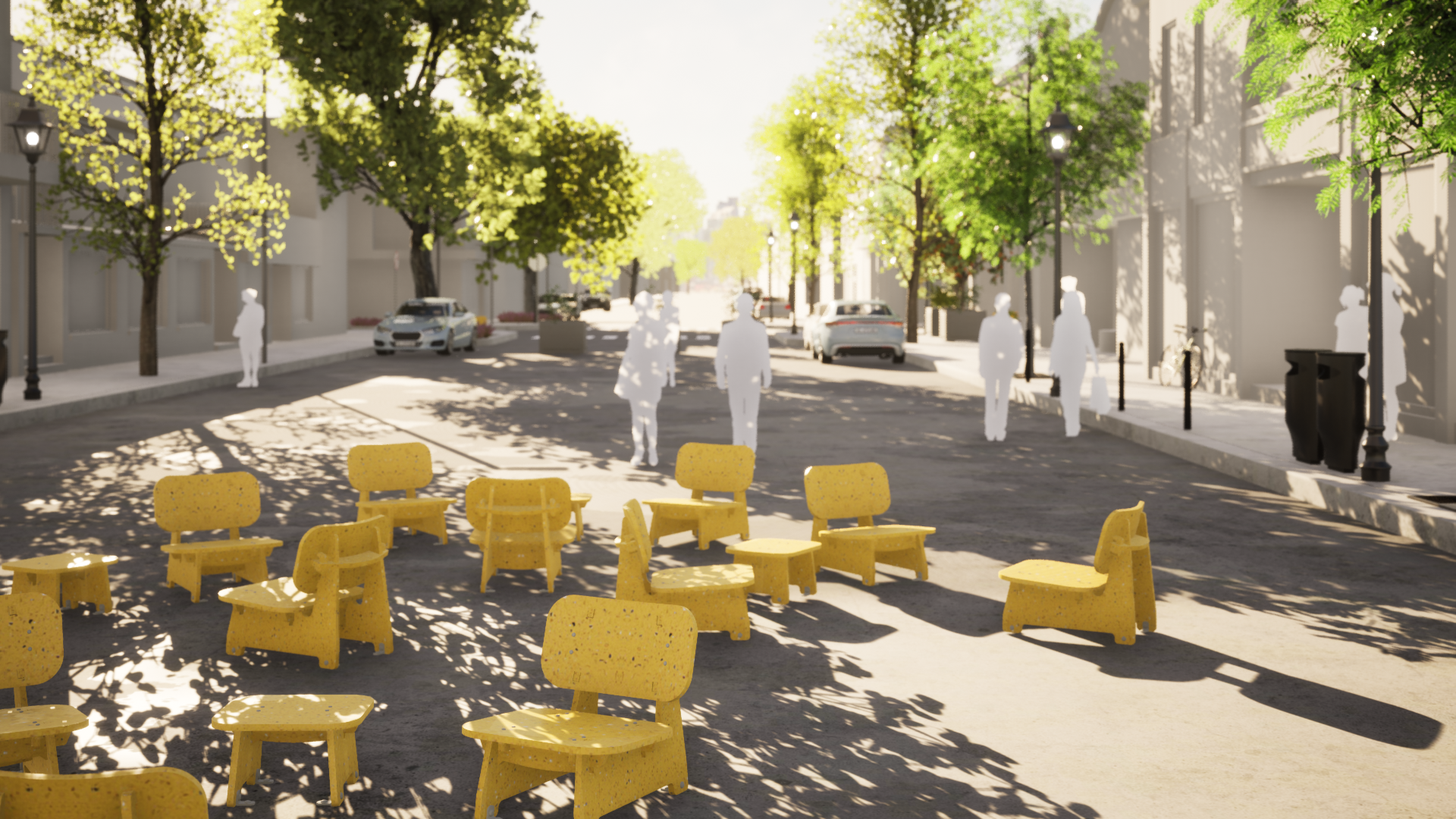 La gamme est entièrement conçue et réalisée à partir de plastiques post-consommation. Chaque pièce produite est unique et peut être implantée de manière permanente dans l’espace public.